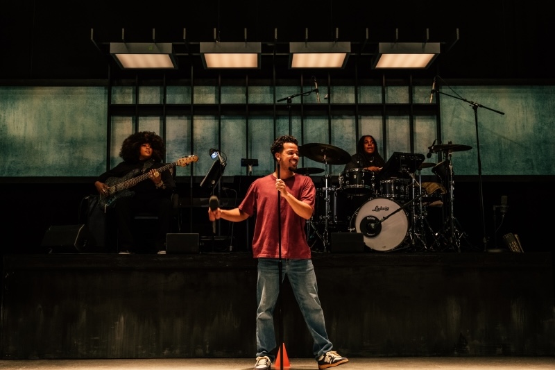 FEATURESNEW REVIEWSREVIEWSYouth Journalism Fellowship Brothers and Sisters: “A Girl’s Guilt Trip” and “littleboy/littleman” L-R: Bassist Tonya Sweets, Marlon Alexander Vargas and drummer Dee Simone in littleboy/littleman at Geffen Playhouse. (Photo…Steven MorrisOctober 27, 2025