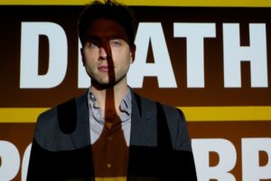 Four motivational speakers are finalists in the National Global Influencers contest. Lucy (Scarlet Bermingham) begins by telling us they’re here to destroy all our most cherished beliefs. She tells us the secret of success is to ignore depressing facts and to practice self-delusion: Just tell yourself, “You are freakin’ Awesome.” Mark (Eric Pierce) assures us that the way to achieve the Inevitability of Cosmic Bliss is to concentrate on the pushed-in face of an endearing pug-dog. Joan (Emilly Thomas) is so distracted by her chocolate addiction that she loses track of her message, crying out, “My free will was roofied and raped by a Reese’s Peanut Butter Cup.” Matthew insists that we are less concerned with the crimes of Stalin and Hitler than with getting laid, and direct action is futile, since all real change occurs sideways. He then goes on to perform a bit of grand-standing, to impress the contest judges, that nearly does him in. The script is scatter-shot but funny, and the actors are sharp and stylish.