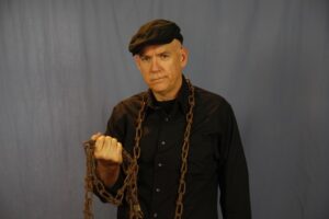 The playwright adopts the typical, no-frills approach of having a sole actor inhabit a virtually bare stage and adopt numerous characters. By doffing a hat, buttoning his collar or affixing a red nose, Tim Powell portrays nine distinct characters from clown to clergyman, each also delineated by a broad accent – an Irishman’s lilt, the drawl of a Southerner, and the cadence of a black man. Castro also has Powell adopt the persona of the slain man — for whom the elephant was killed — in an interesting, ghostly choice.