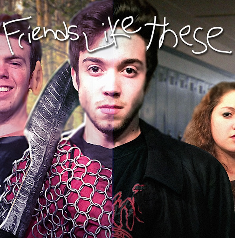 Gregory Crafts’ drama Friends Like These tips its hand during its prologue. In the pitch-dark theater, we hear a montage of news coverage and eye-witness accounts of a shooting rampage at a high school. The lights then come up on a trio of teens wielding foam swords, garbed in medieval attire, spouting archaic English. It’s confusing for a moment until we realize these three are merrily participating in a “Live Action Role Playing”game. Nerdy Garrett (Scott Sharma), Emo girl Dis (Sammi Lappin) and sometime jock Brian (Sean Casey Flanagan) are geeky gamers who hang out together, copping a fair amount of bullying and daily abuse from the cooler kids at their school. Their only escape is acting out these guided fantasy war games in a realm called Haven.