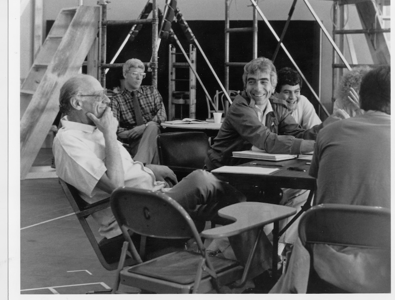On the Taper Stage, L-R: Playwright Arthur Miller, Kenneth Brecher (background) and Gordon Davidson. (Photo by Jay Thompson)
